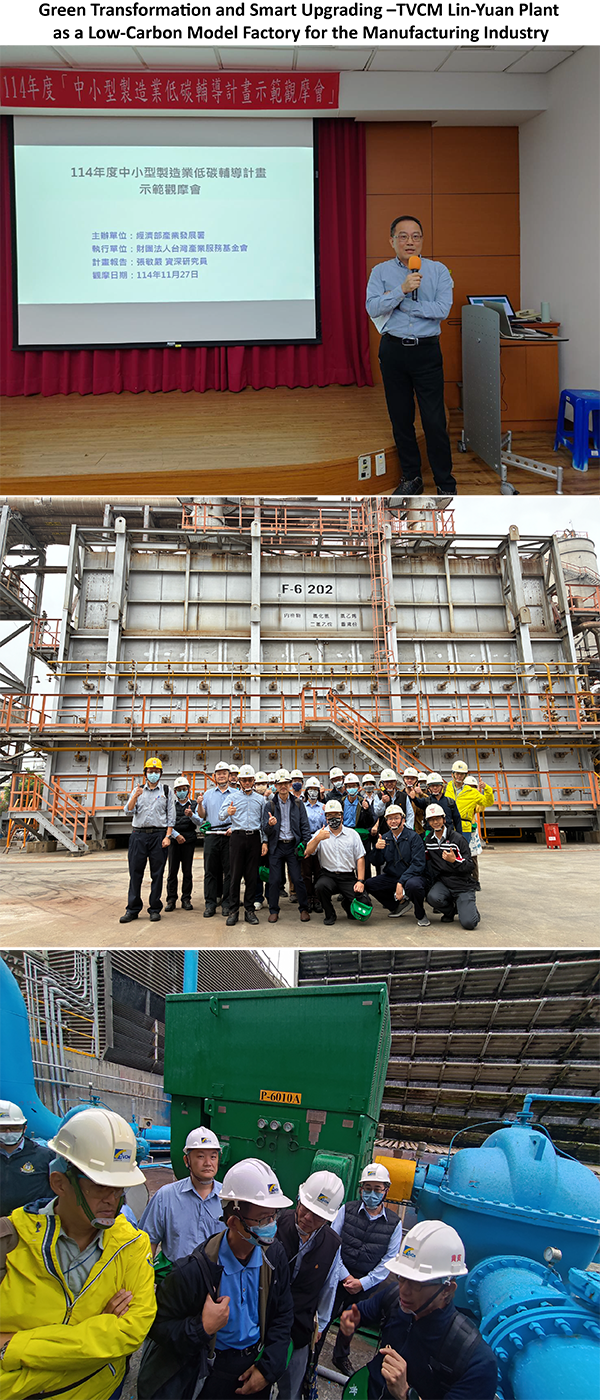 TVCM Lin-Yuan Plant, a subsidiary of CGPC, was selected as a demonstration site under the Ministry of Economic Affairs’ Industrial Development Administration “SME Low-Carbon Guidance Program,” showcasing its achievements in green transformation and smart manufacturing upgrades.