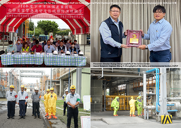 On November 28, 2025, CGPCP, a subsidiary of CGPC, conducted the 2025 Second-Half Lin-Yuan Industrial Park Chemical Disaster Emergency Response and Regional Joint Defense Drill and was designated as the demonstration site for the exercise.