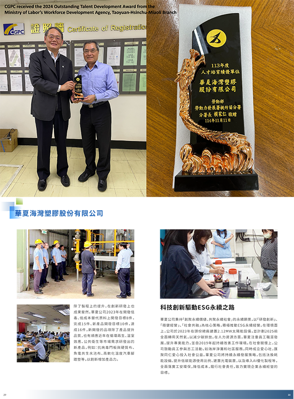 CGPC will continue to strengthen its talent development strategy centered on institutionalized training, integrating ESG sustainability goals with smart manufacturing initiatives. By steadily cultivating key professional talents, the company establishes a solid foundation for long-term operations and competitiveness.