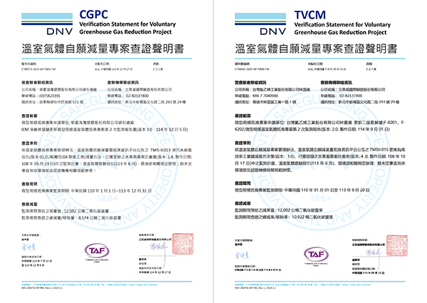 CGPC Main Plant and TVCM Linyuan Plant continue to advance greenhouse gas emission reduction and low-carbon transformation initiatives. The second application for micro-scale greenhouse gas offset projects has recently completed third-party verification.