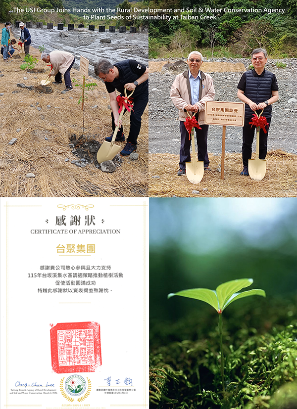 To implement corporate sustainability development and actively respond to the United Nations Sustainable Development Goals (SDGs), the USI Group participated on March 4th in the “Taiban Creek Watershed Adaptation Strategy Tree-Planting Activity,” organized by the Taitung Branch of the Rural Development and Soil & Water Conservation Agency under the Ministry of Agriculture.