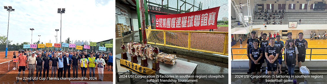 Since 2023, plants across the Linyuan area have jointly organized the “USI Corporation Charity Basketball Game,” combining employee wellness with social engagement. The 2024 second edition was hosted by APC, with teams from USI, TTC, TVCM, and CGPCP participating. After covering event expenses, each team voluntarily donated NTD 20,000 to support the Kaohsiung Municipal Renwu Senior High School basketball team and assist underprivileged student-athletes. In appreciation of the Group’s generous support, Renwu Senior High School presented a certificate of gratitude to the participating plants. This event not only strengthened camaraderie among employees but also embodied the Group’s commitment to caring for the underprivileged and fulfilling its corporate social responsibility. For event photos, please refer to the company newsletter.