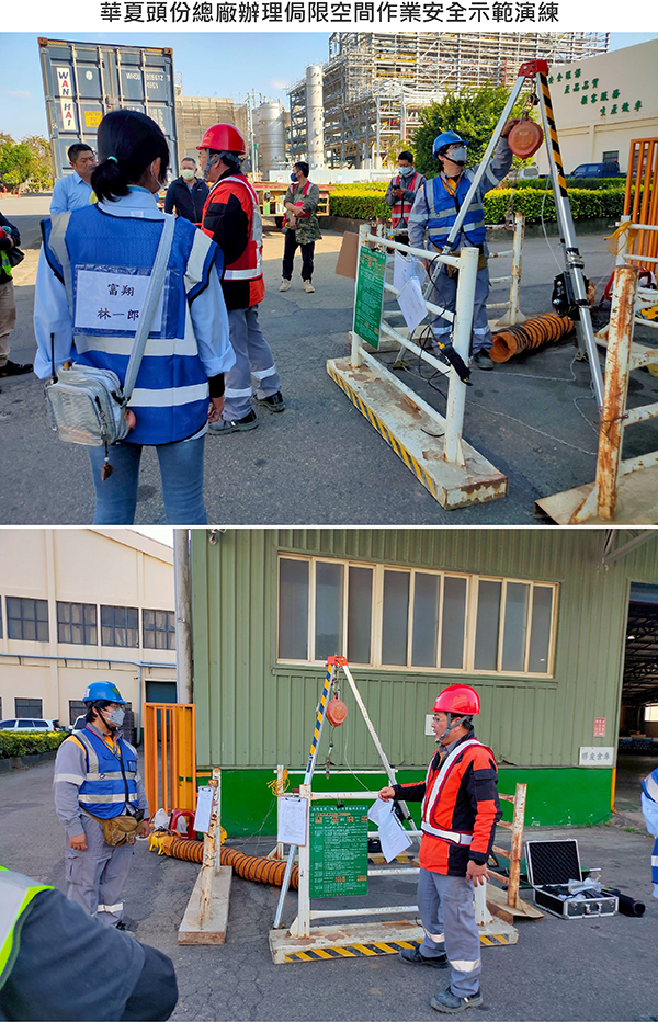 為提升同仁對局限空間作業安全的認知與應變能力,華夏頭份總廠於2026年1月29日邀請中鼎工程公司於廠區辦理「局限空間作業安全示範演練」。
