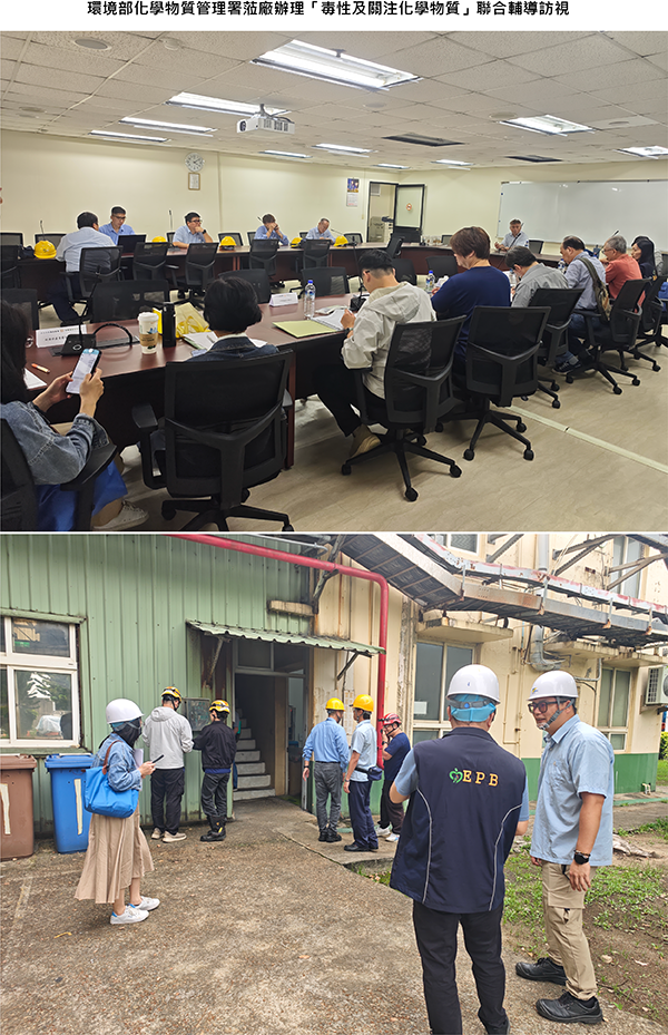 為落實化學品危害預防並達成減災目標,環境部化學物質管理署於 4 月 16 日蒞臨本公司,針對毒性及關注化學物質運作進行輔導與訪視。本次作業結合跨機關聯合輔導機制,成員涵蓋中區職安衛中心、環境事故專業技術小組、環保局、消防局、經濟部頭份產業園區服務中心及專家學者,旨在協助廠場提升化學品自主管理效能。